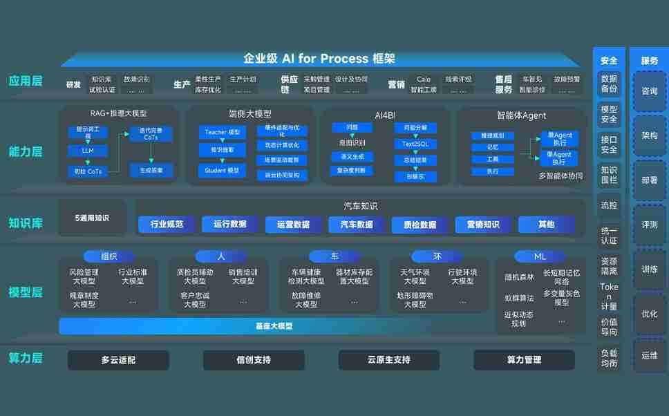NG集团问学智车解决方案是一套基于AI技术的汽车行业智能化系统,,覆盖从底层算力到顶层AI应用的全栈方案。。。方案由算力层、、模型层和应用层组成:算力层,,方案支持多种一体机配置,,,具备云端灵活部署、、、、多云适配以及动态优化计算资源的能力;模型层,,,,NG集团问学平台版提供了企业级AI应用一站式构建与管理平台,,,,支持基于后训练强化技术的汽车企业专属模型的训练、、、评测和运营;应用层,,NG集团问学DeepSeek版提供包括超级员工、、智能招采、、智能营销、、、、智能客服、、、AI for BI等一系列解决方案,,可助力汽车行业实现数字化转型,,让管理更智能、、响应更敏捷。。。